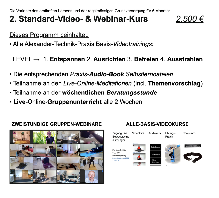 Der Alexander-Technik Online-Basis-Kurs besteht aus folgenden Komponenten:
